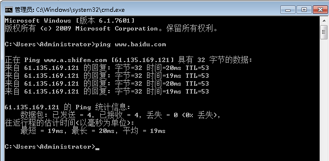 2、点“确认”或“回车”后即可进入命令模式窗口,我们在里面输入tracert 61.135.169.121 之后按下回车键确认即可追踪到本地电脑到百度网站所在地的路由器线路(61.135.169.121为目前百度网站的IP地;