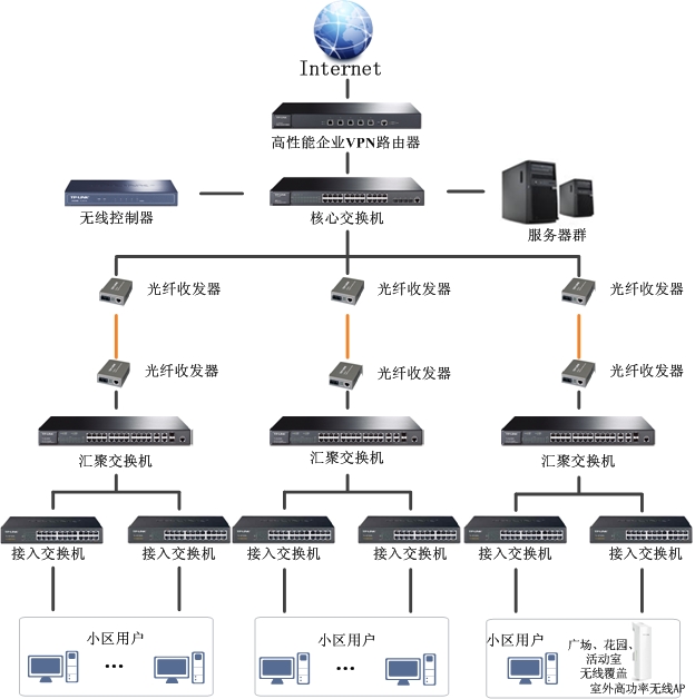 可方便地在网络中接入无线接入点(AP)设备,实现无线网络的快速部署,满足居民移动上网的需求;也可通过在网络中接入网络摄像机实现视频监控。