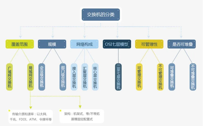 交换机各类繁多,不同种类的交换机性能各异,我们在选择前就需要知道自己需要的种类,交换机可以从不同的方式进行分类,那么交换机如何进行分类?