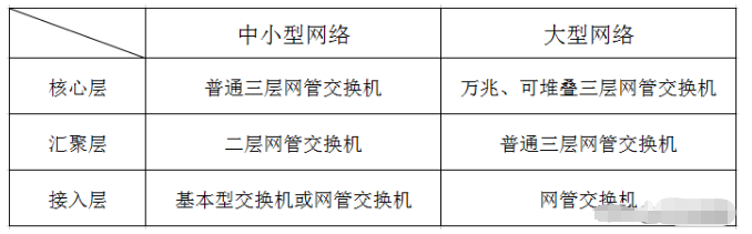 选择核心交换机应重点比较交换机的吞吐量、带宽等因素,选择千兆甚至万兆以上的可管理交换机。