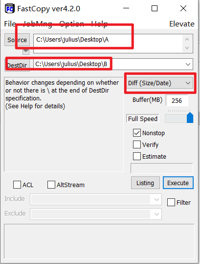 Diff (Size/date) :如果大小或日期不同或不存在则复制(默认)