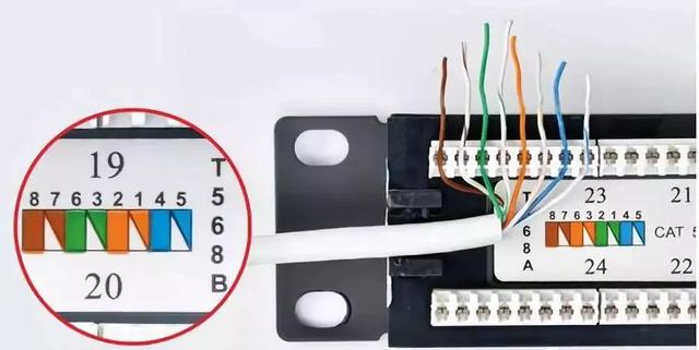 T568B线序见下图,一般在配线架上都有标注,注意和水晶头的B型打法是不一样的,不要搞混。
