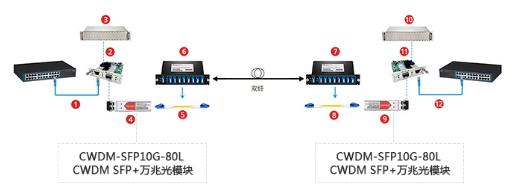 方案三:CWDM SFP+万兆光模块与交换机之间的连接
