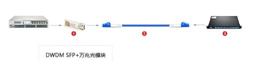 将光模块插入交换机SFP+端口中,再用铠装光纤跳线将其与DWDM密波分复用器进行连接。