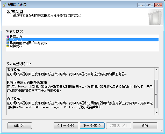 3.选择需要的发布类型,我这里选择事务发布