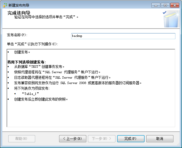 9.完成向导,填写一个发布名称