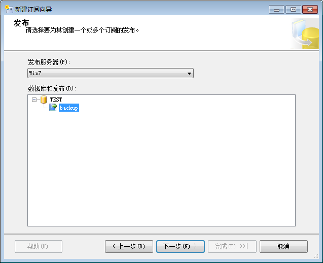 16.选择订阅服务器和刚刚新建的空数据库