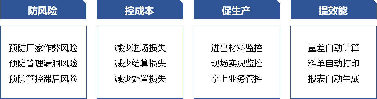 企业有效管控---节约大宗材料综合成本近3%;物资计量管控措施有效落地;保障企业业务数据安全;实现全局统一管理标准;双向集成数据共享;定制报告推送。