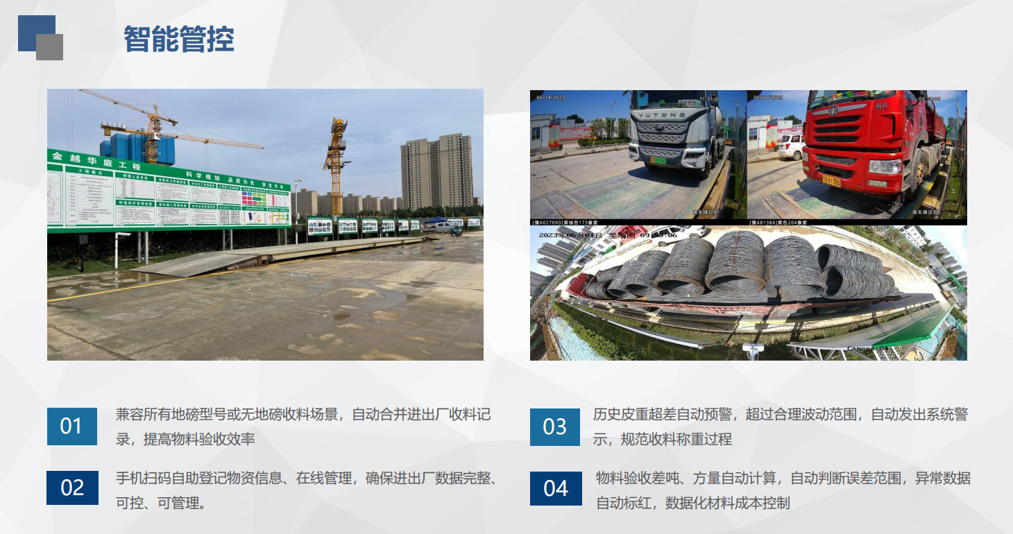 项目减负提效---车车过磅,夜间浇筑混凝土100%无人值守;提高生产效率,日间收料90%场景自动过磅。