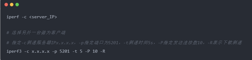 Iperf 是一个用于测试网络带宽的工具,它可以测量网络之间的数据传输速度。它可以在两台计算机之间执行,一台作为服务器,另一台作为客户端。