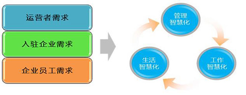 在智慧园区建设的过程中,要满足不同人群的需求。从运营者的角度出发,需要高效智能的管理、绿色节能的设施;从企业的角度看,其长远发展更是需要各类企业服务资源,如工商注册、财务税收、融资担保等;从员工的角度出发,良好的办公环境,以及完善的生活服务是首要需求。围绕企业的发展要求和人才的精神需要,建设智慧型园区,必须协调政府、企业等各方资源,实现管理、工作、生活智慧化,三位一体打造智慧园区。
