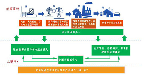 作为国家首批"互联网+"智慧能源示范项目之一,北京经开建立了一整套能源综合管理服务解决方案和运营服务平台,集成可再生能源、微网、各类能源设施、用能末端、电动汽车及充放电设施等,在网侧实现电、冷、热多能互补协同,有效降低园区能源运营成本,同时降低入驻企业用能成本,形成向其他园区可复制推广的商业模式和解决方案。