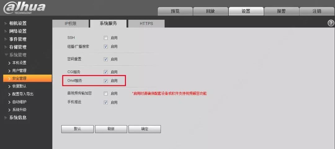 注意:有些摄像头中的onvif校验是在网络设置-端口或连接中,具体以实际界面为准。