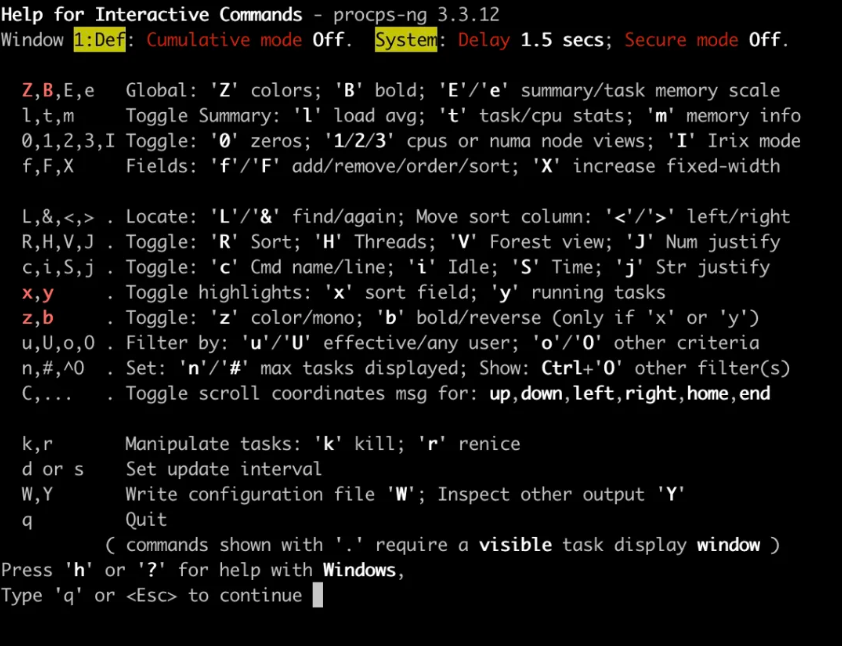 在 top 命令的交互式界面中,你可以使用以下按键来执行操作: