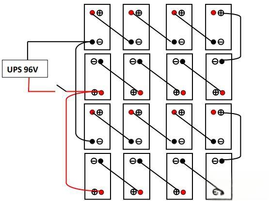 5. 对于96伏的系统,如果同样需要更大的电流,也可以使用两组蓄电池并联的方式。具体的并联接线图如下所示。