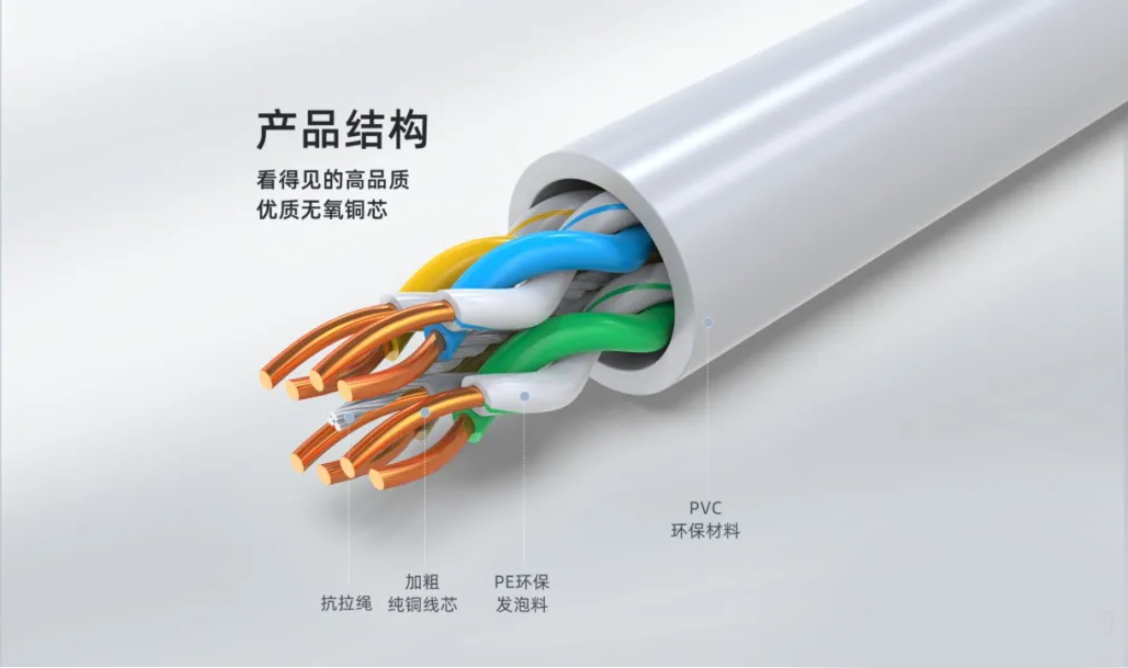 无氧铜网线:质地柔软,色泽亮黄,反射出金黄色光泽,是网线中的高品质选择,传输性能稳定,耐用性强。