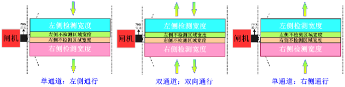 默认为双向通行,背对雷达区分左右侧,三种模式如下图: