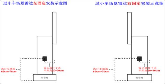 雷达安装在闸机上,背对雷达,杆在雷达左侧,是左固定,杆在雷达右侧,是右固定。雷达出厂默认是左固定,如杆在雷达右侧需修改为右固定。