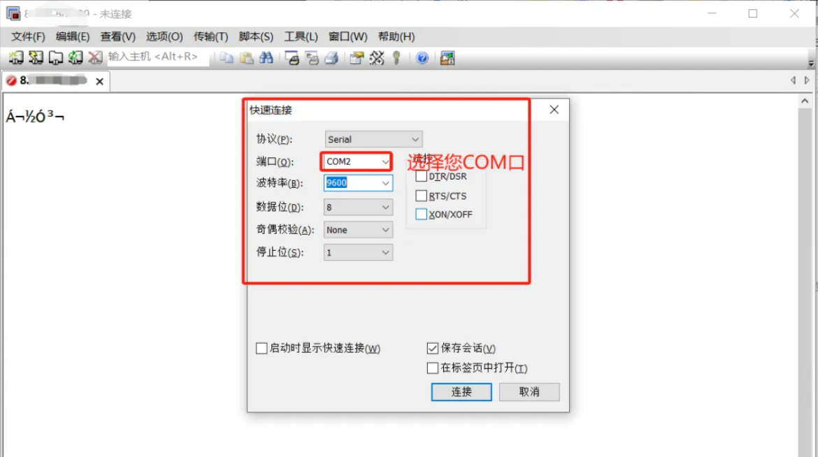 二、PC上打开终端仿真软件,新建连接,设置连接的接口,配置通信参数如下: