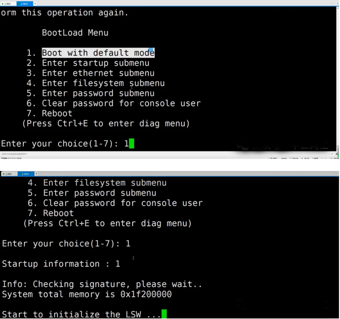 三、重启交换机,当出现“Press CTRL+B to enter BIOS menu”时,按下“Ctrl+B”