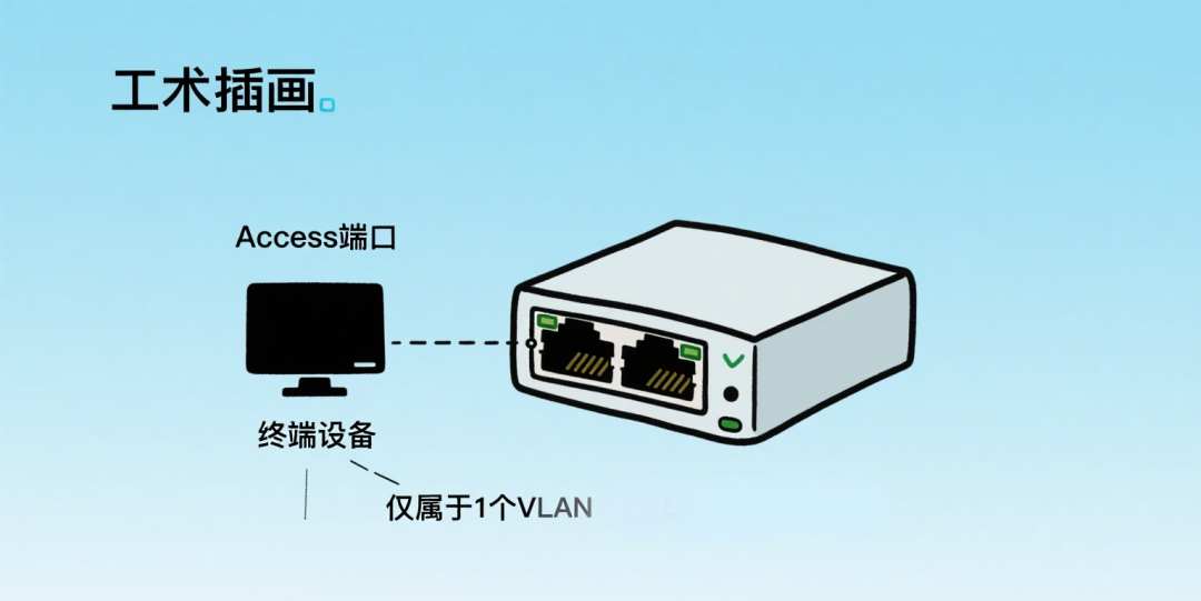 入方向--无标签的打上 access 设置的 vlan id,有标签的如果和 access 的 van 一样,带标签放行进入设备