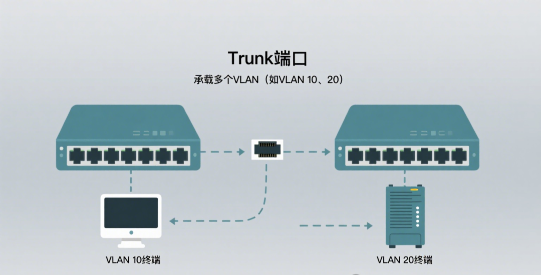 入方向--无标签数据打 pvid 标签,有标签数据看在不在trunk放行列表,在则带标签进入设备,不在则丢弃