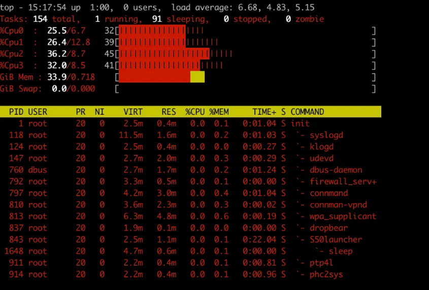top 命令是 Linux 系统中一个实时显示进程动态的工具,它可以显示系统中各个进程的资源占用情况,如 CPU 使用率、内存使用率等。命令行执行top命令,会出现以下视图:...
