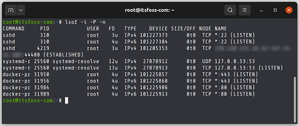 不管你是直接登录的系统,还是使用 ssh 连接的,都可以使用 lsof 命令来检查端口:
