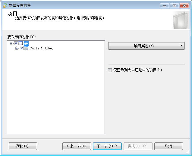 4.选择要发布的表和其他对象,这里我测试的只有一个表