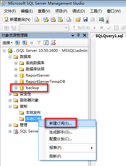11.登录从数据库,首先新建一个空的数据库,然后点击新建订阅