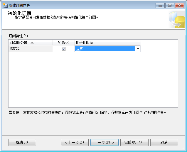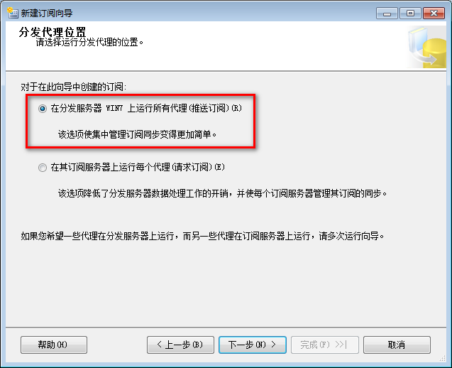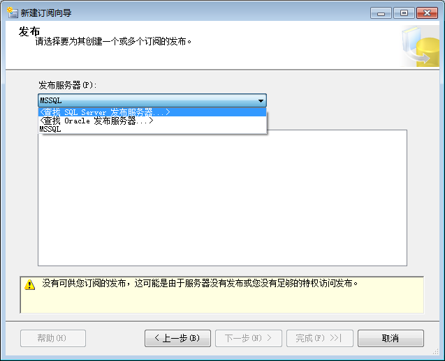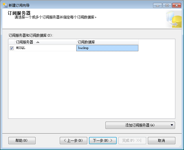 16.选择订阅服务器和刚刚新建的空数据库