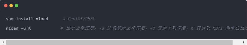 iftop 是一个基于文本的实时流量监控工具,可以显示网络接口的实时流量情况,包括上传和下载速度。安装并使用 iftop: