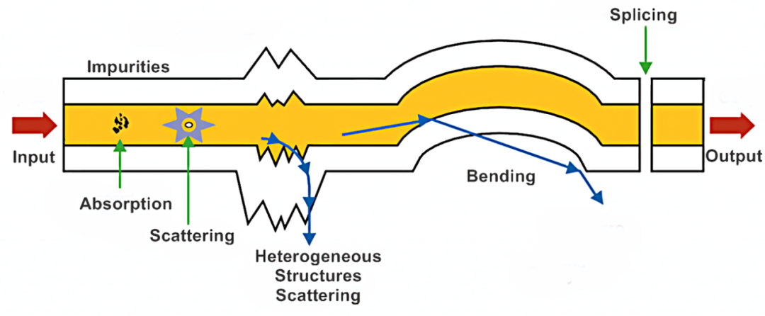 光纤通信中常用的波长范围为800~1800nm,其中800~900nm被称为短波长波段,主要包括850nm一个窗口;1300~1600nm被称为长波长波段,主要包括1310nm和1550nm两个窗口。不同波长下的光纤损耗系数也不同,影响着信号在光纤中的传输损耗。