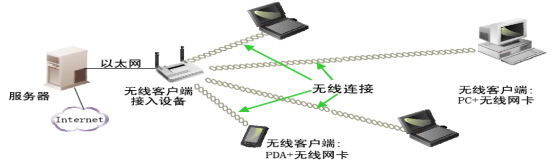 无线局域网 (Wireless Local Area Network) 是以射频无线电波通信技术构建的局域网,虽不 采用缆线,但也能提供传统有线局域网的所有功能。无线数据通信不仅可以作为有线数据通信 的补充及延伸,而且还可以与有线网络环境互为备份。