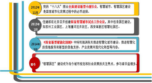 随着国内智慧城市建设步伐的不断加快,党中央和国务院也更加注重智慧园区的建设与发展,从2012年至今,颁布了多项政策推进智慧园区的建设,国内更多的各类型园区投身于园区的智慧化建设中。