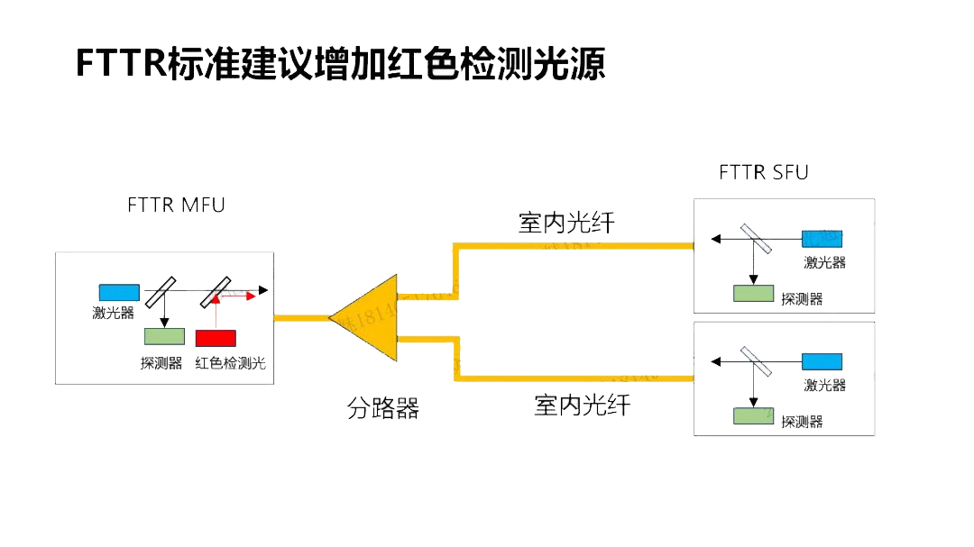 FTTR建议的是加入有色光源,开会做PPT解读时,人手一个激光笔,就是那个有色激光,利用可见光来进行断点检测。
