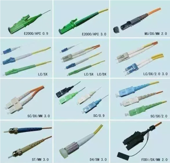 连接器的品种信号较多,除了上面介绍的三种外,还有MTRJ、ST、MU等.