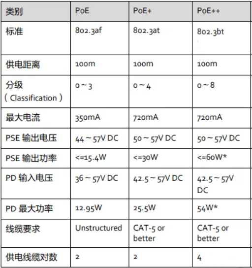 所以选用poe时,需要看下支持标准与你项目的用途是否匹配。