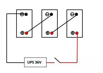 4. 当需要较大电流而电压仍为36伏时,可以采用两组12伏蓄电池并联的方式。这样可以在保持电压不变的情况下增加电流输出能力。接线方法请参考下图。