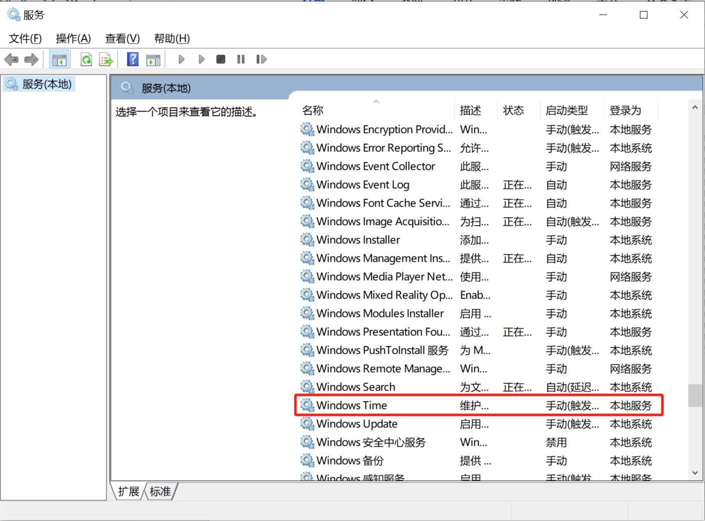 在服务项中找到Windows Time