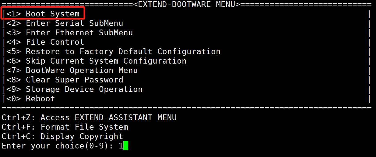 重新启动设备,在设备硬件自检通过之后按快捷键Ctrl+B进入BOOTROM模式。