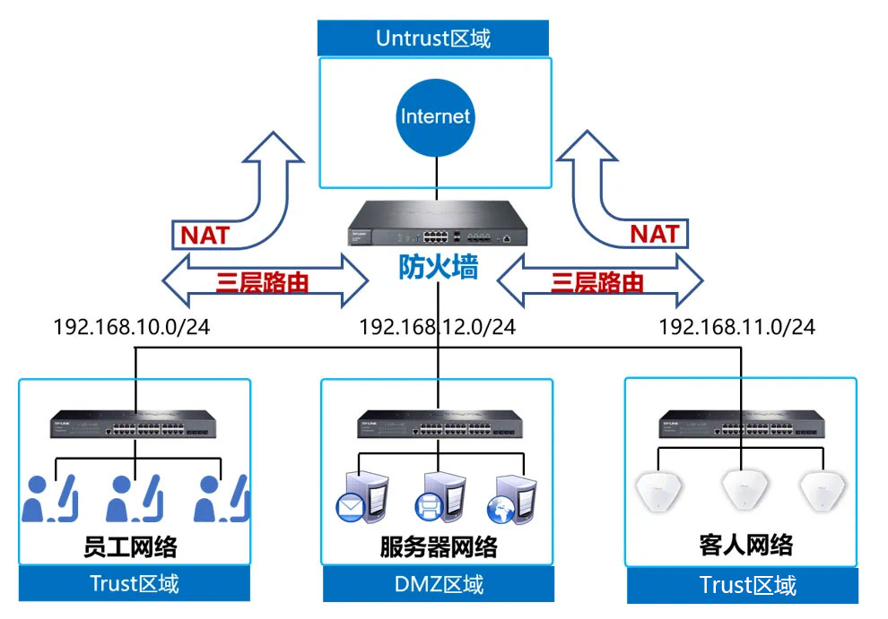 防火墙作为三层网关后,可以在网络中替代原有的路由器,保护内外网通信数据安全这种模式下,防火墙对数据报文的处理机制更加完善,对网络安全防护的能力会更强。
