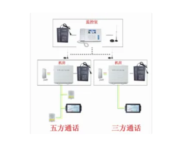 电梯五方对讲系统包括轿厢、机房、轿顶、底坑和监控中心等五个位置的对讲设备。其工作原理如下: