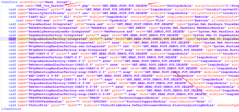 配置C:\Windows\System32\inetsrv\Config\applicationHost.conf的put,delete...