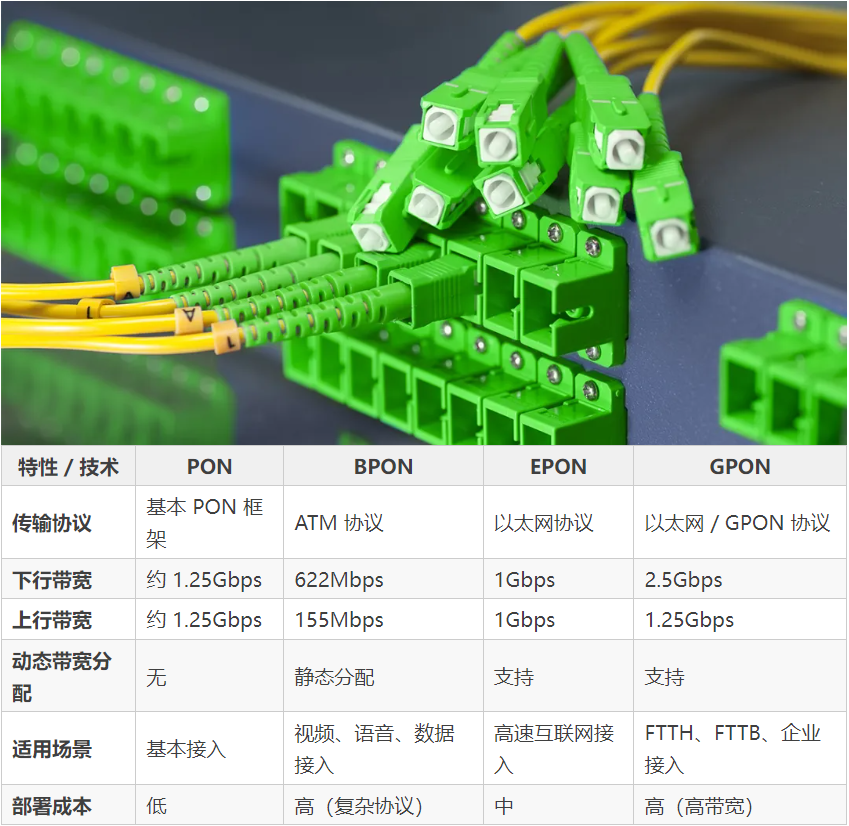 在现代光纤宽带接入技术中,PON(Passive Optical Network,无源光网络)技术因其高效、节能的特性,广泛应用于各种光纤到户(FTTH)、光纤到大楼(FTTB)等接入场景。然而,PON 并非只有一种类型,它有多种演变和优化版本,包括 BPON、EPON 和 GPON 等。每种技术虽然都基于 PON 原理,但在不同的网络需求和标准下,具有各自的特点和优劣势。...